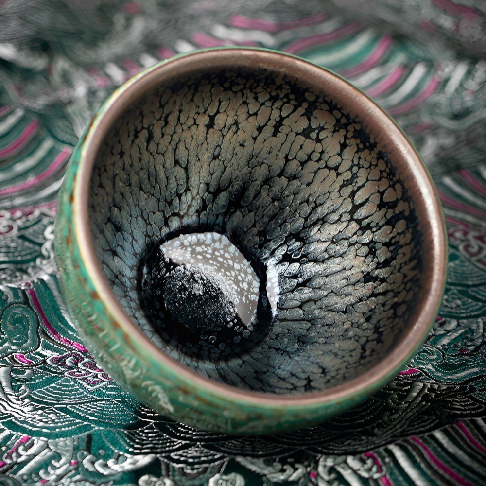 This stunning visual effect is the result of meticulous craftsmanship. Inheriting the essence of lacquer artistry, each cup undergoes dozens of processes, including selecting the clay body, applying lacquer, and polishing, with each step reflecting the artisan’s unwavering attention to detail. The demanding environmental conditions required for lacquer work ensure that each Jianzhan cup is a crystallization of time. The delicate patterns are not only marks of time’s passage but also imprints of the millennia-old lacquer culture, silently narrating the allure and warmth of ancient craftsmanship.