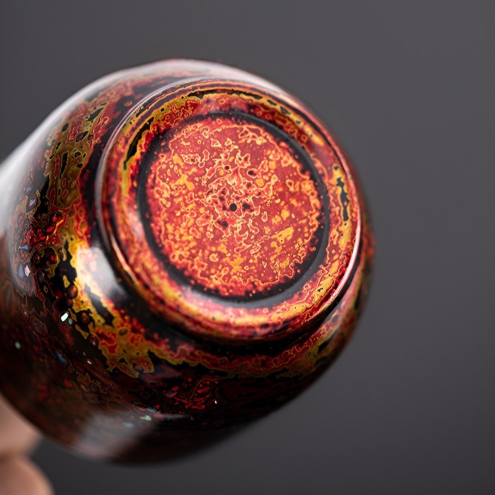 The cup’s lacquer exterior, crafted with XiPi technique, intertwines hues of red, green, and gold into natural patterns, resembling surging dawn clouds and winding twilight rivers. Each stroke is a heartfelt narrative of millennia-old lacquer craftsmanship. The interior, made of 99% pure titanium, draws from modern wisdom in medical and aerospace fields, offering lightweight, antibacterial, and corrosion-resistant qualities, warmly embracing traditional aesthetics with modern technology.