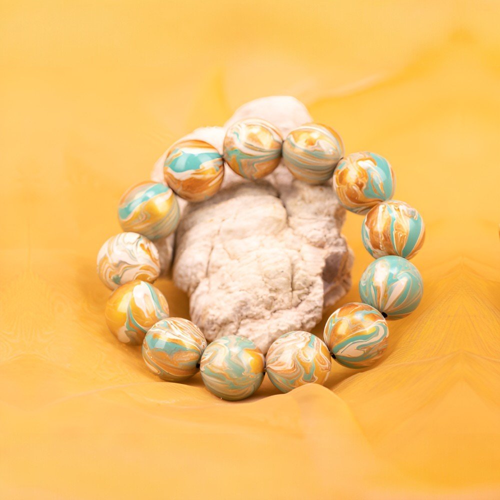 Within the Dunhuang grottoes, celestial Apsaras dance gracefully on the walls, surrounded by vibrant cinnabar red and azure blue hues that have retained their brilliance through the ages. The “Dunhuang Dream” bracelet captures the ethereal essence of these Apsaras, incorporating their graceful forms into its design. The rich, intense colors evoke the grandeur of the Tang Dynasty and the mystical allure of the desert landscape.