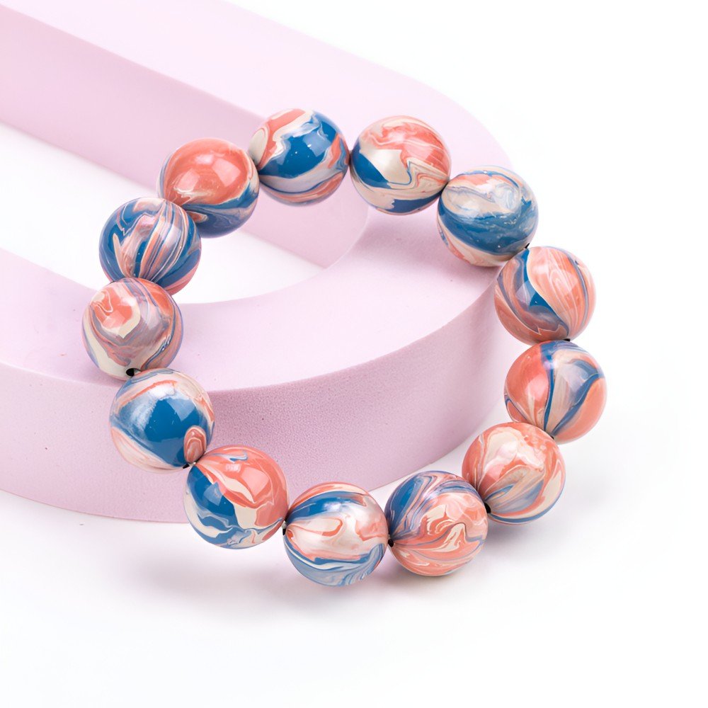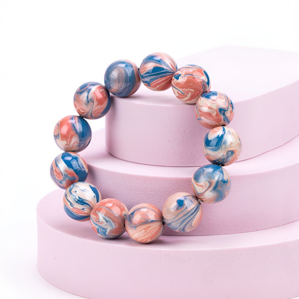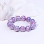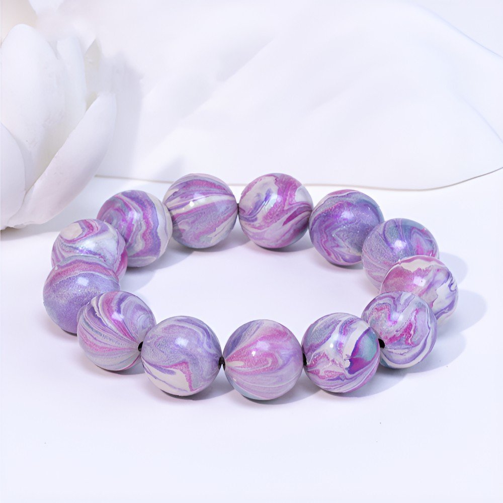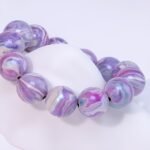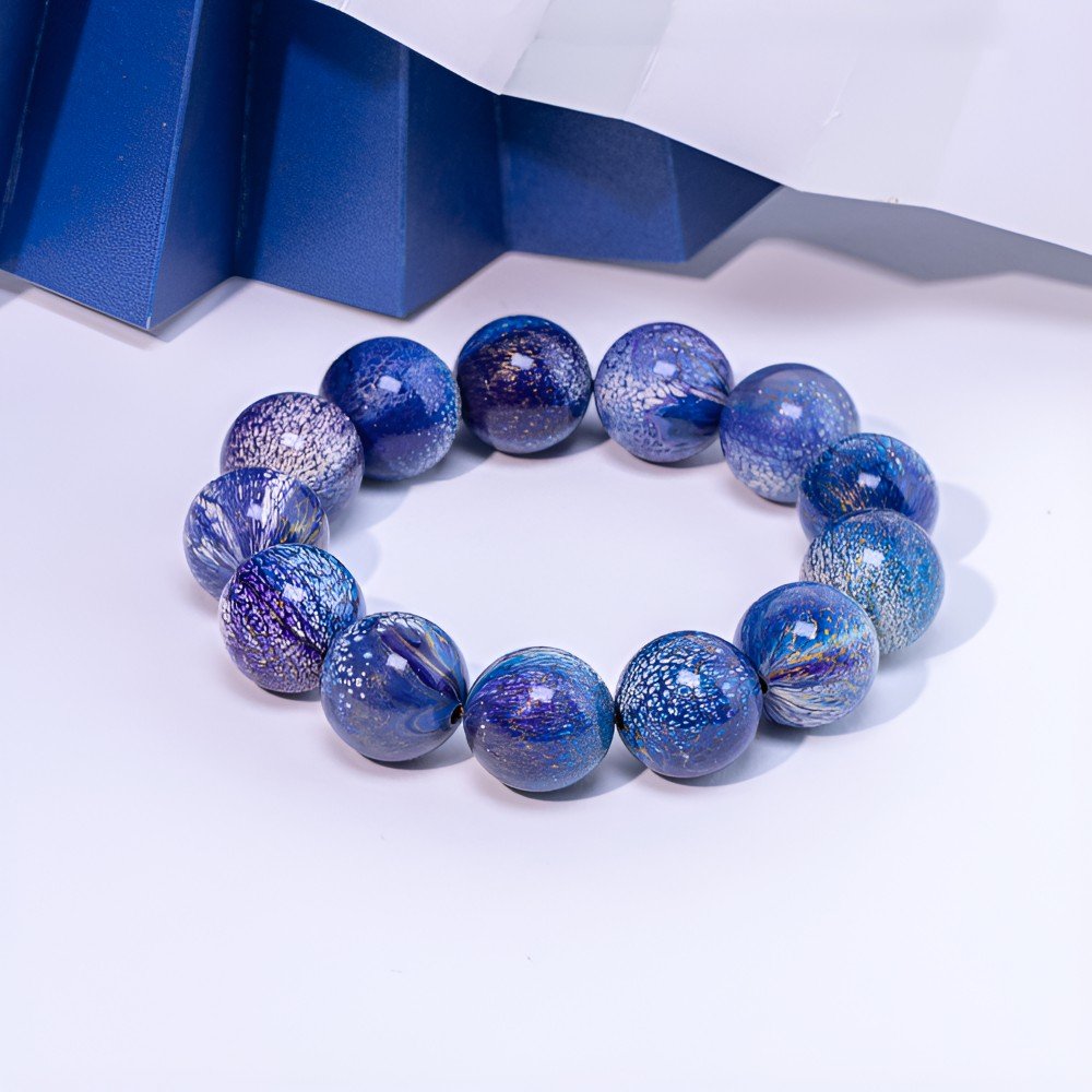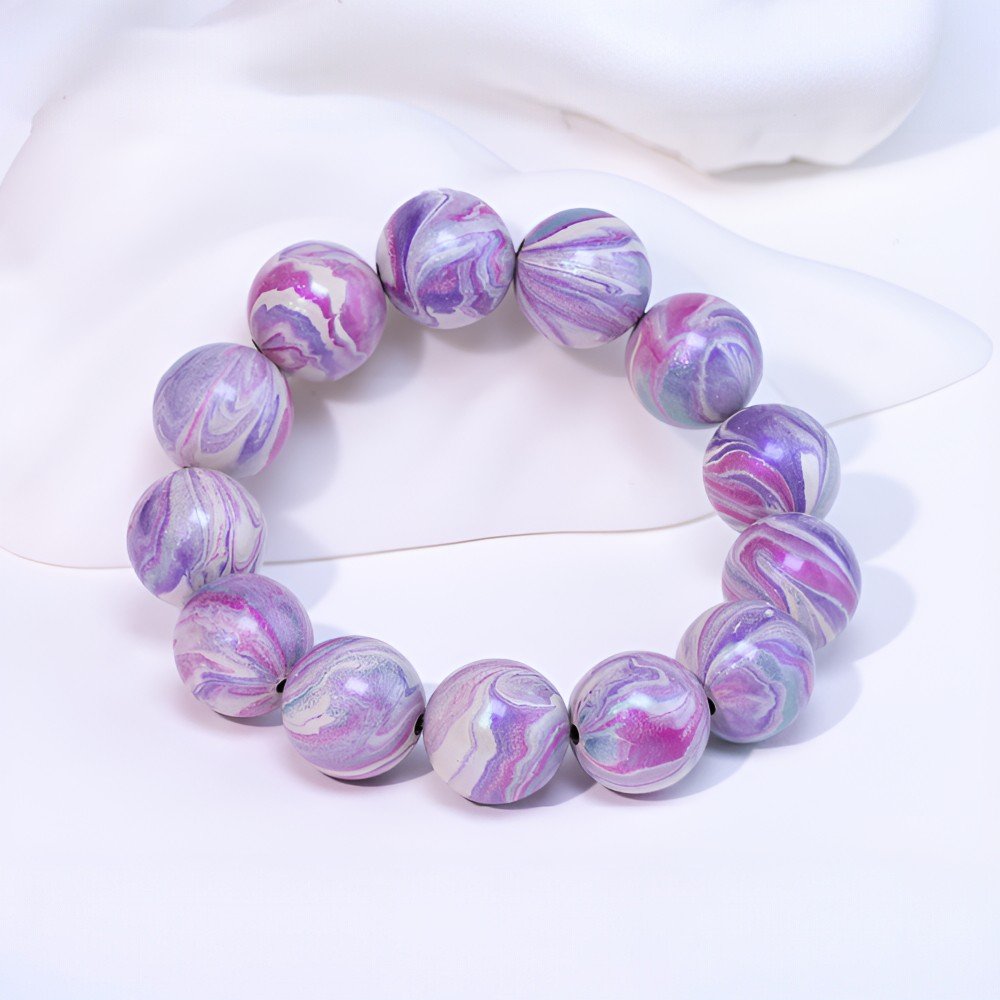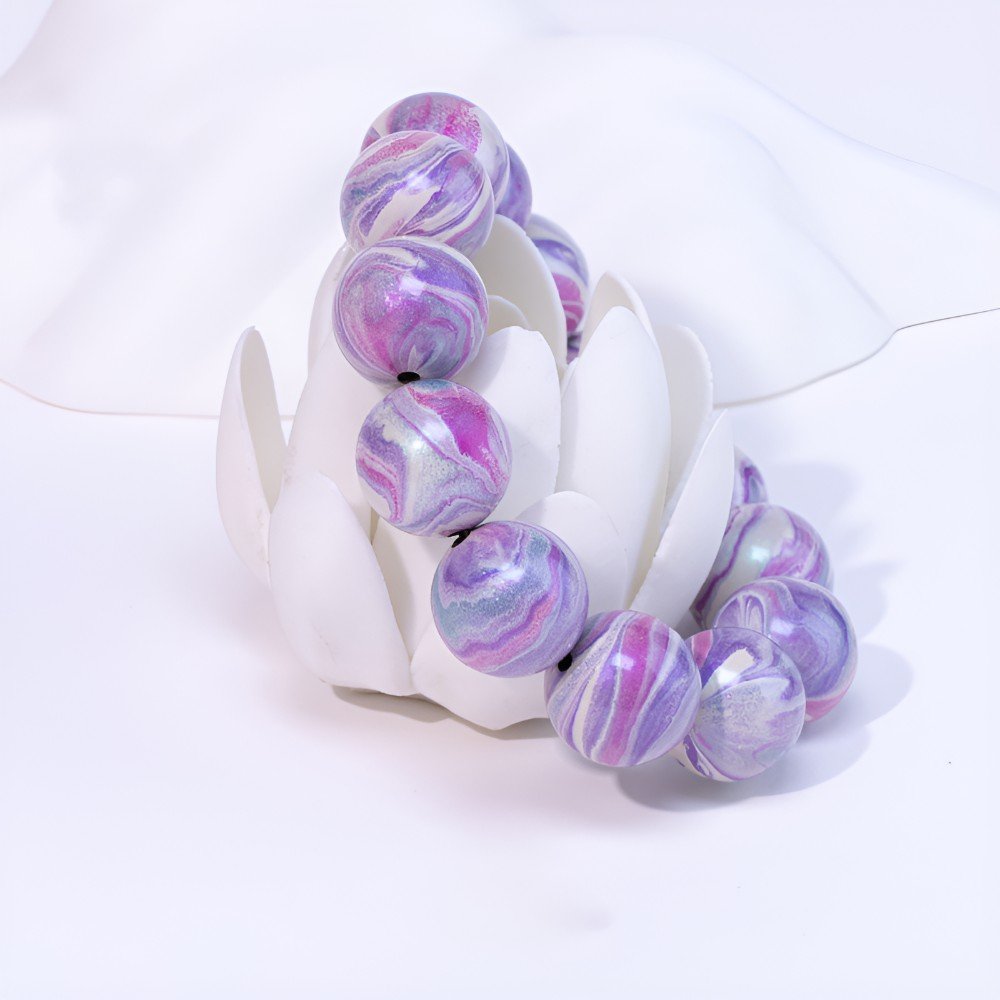 Life is a dream, where encounters and departures are fleeting. This bracelet, like amber, captures these moments. Each bead, crafted with lacquer, blends colors: soft purple like lavender, pink-purple like youthful reverie, and light blue like tranquil waters. These hues form unique patterns, revealing untold stories of the soul.