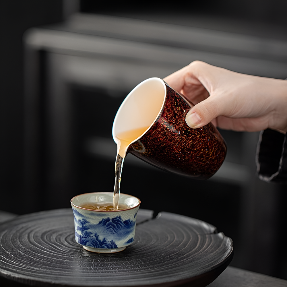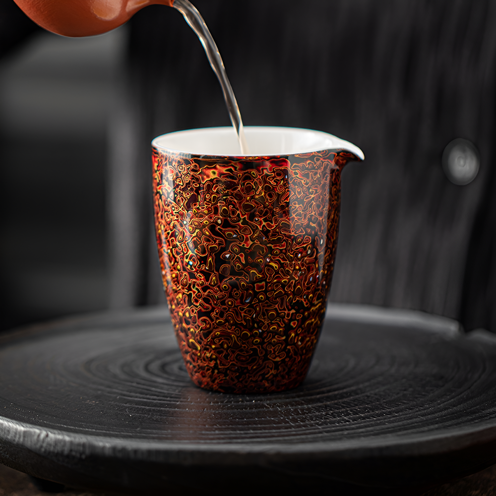 Discover the Liuyun Rhythm Lacquer Tea Sharing Cups, handcrafted with traditional rhinoceros leather lacquer, embodying the fluid beauty of nature and ancient craftsmanship, Elevate your tea sharing ritual.