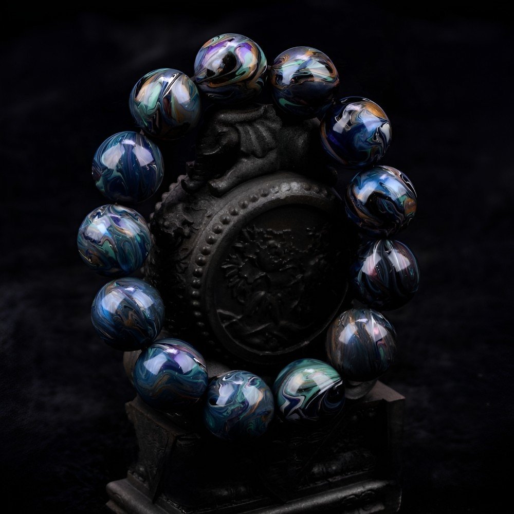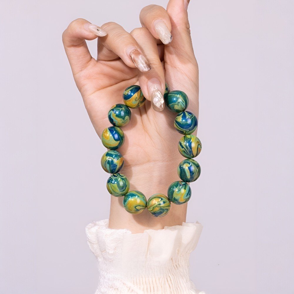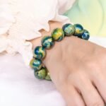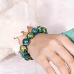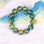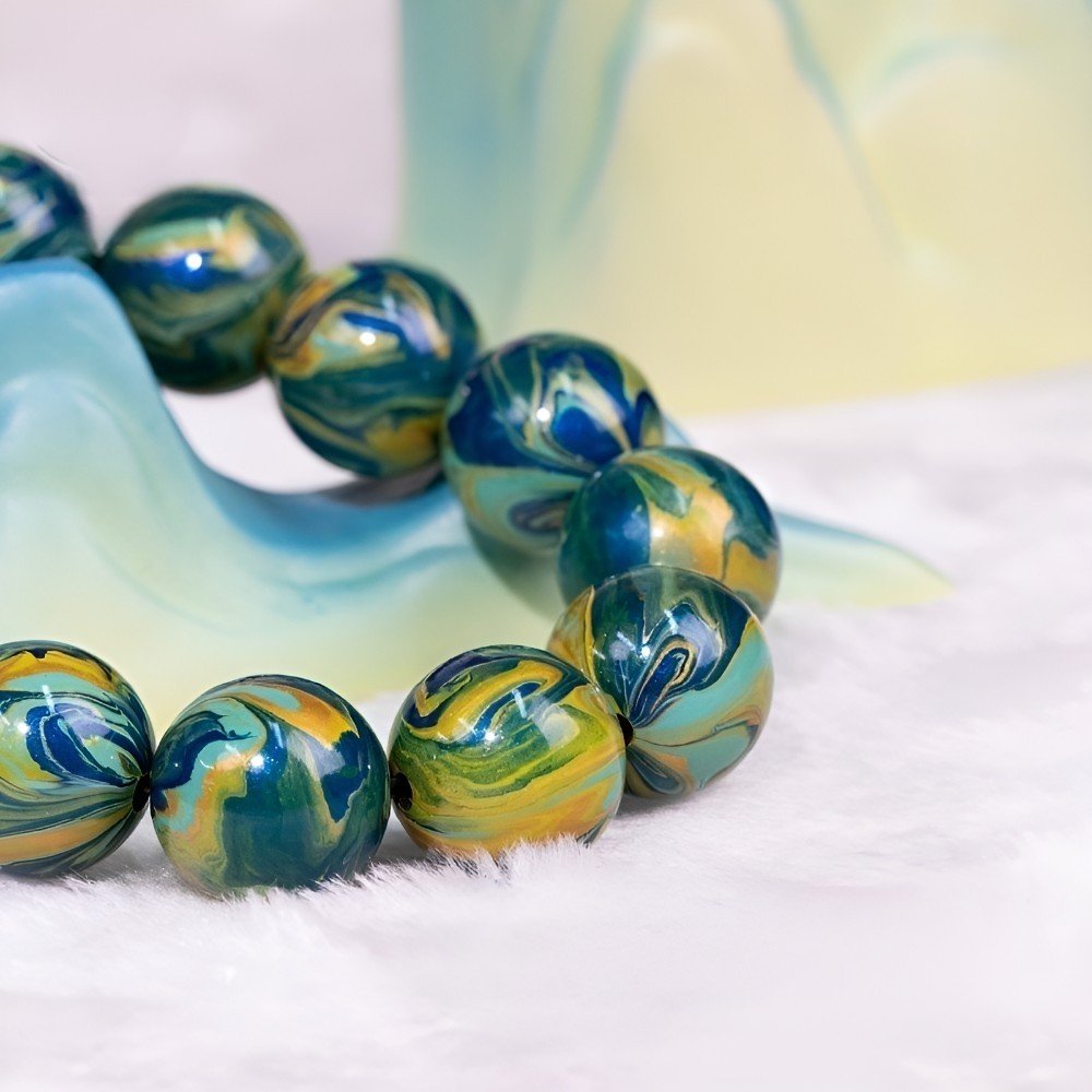 The bracelet’s colors blend blue, green, and yellow, a microcosm of nature. Deep blue symbolizes vast skies and seas, green represents lush mountains, and bright yellow brings warmth. Each bead has unique patterns, evoking majestic peaks, ethereal mists, and flowing streams.